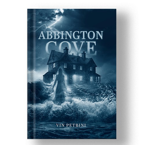 Design an ebook cover for a creepy ghost story featuring an abandoned, retreat on the coast of Maine