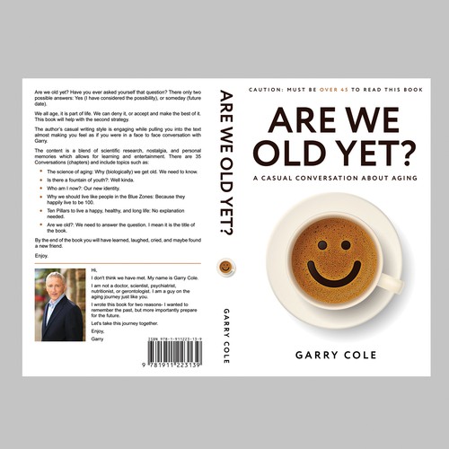 Book cover for book about aging. Title: Are We Old Yet? It will be fun to see your design on Amazon.