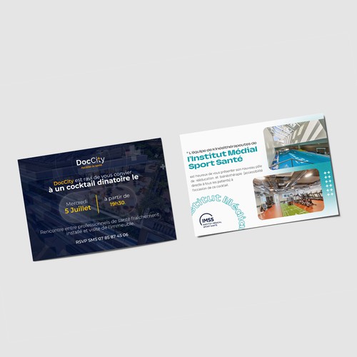 J'ai besoin d'un carton d'invitation recto-verso pour évènement co-organisé (IMSS et DocCity), d'une visite d'un immeubl