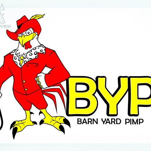 I want to create a word logo with picture of a barn yard pimp. A comical Pimp looking rooster. Holding a hook would...