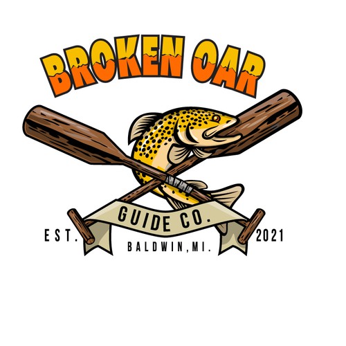 Group of fishing buddies that would like to create a fly fishing logo that includes a broken oar, brown trout and establ