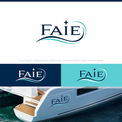 This is a logo for a sailing catamaran pleasure yacht. The boat is a 46 foot Lagoon catamaran sailboat. Our family will