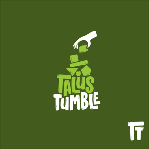 The logo is for a custom cut rock stacking game. The rocks are ovals, rectangle, triangle, square, 5 sided and a cube a