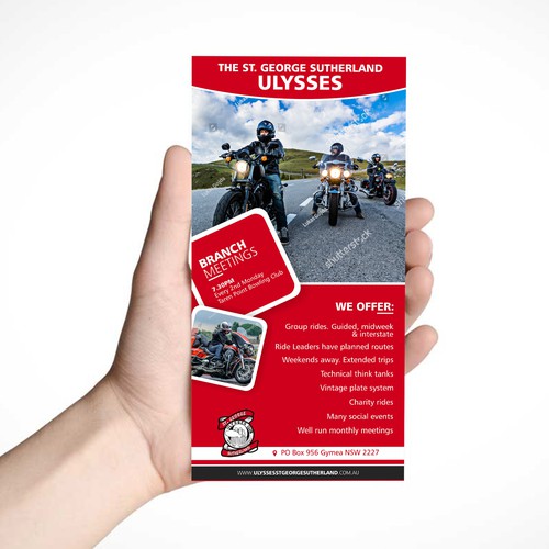 We are a social group of what some have call “born again bikers”. We need an DL size flyer to hand out at charity runs a