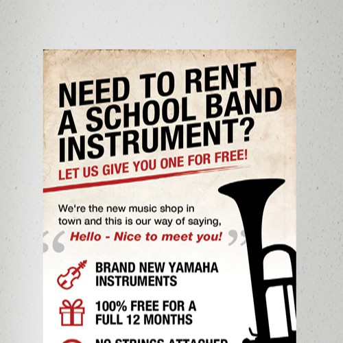 The ad details how callers can receive a school band instrument free for an entire year.
