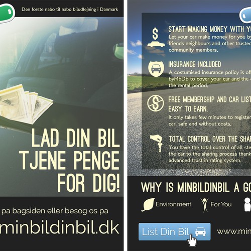 Danish Peer-to-peer (neighbour-to-neighbour) car-sharing site. We enable Danish car owners to rent out their cars