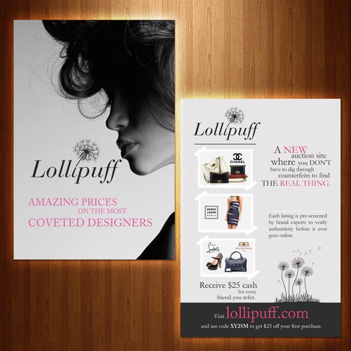 FLYER & POSTCARD: LOLLIPUFF.COM Online auctions for women's designer goods. Listings are pre-screened for authenticity.