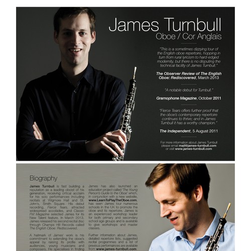 I am a freelance musician (playing the oboe) giving recitals across UK.