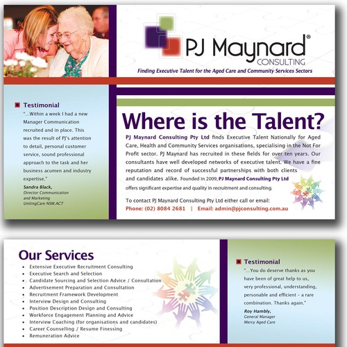 Quirky postcard (front and back) for Executive recruitment consultancy specialising in aged care executive recruitment..