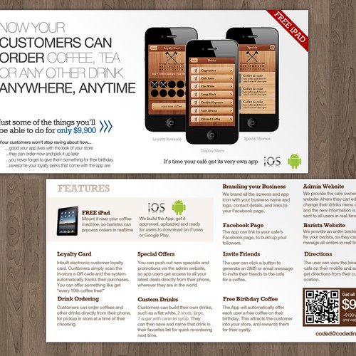 We have developed a coffee ordering app so that cafes and coffee shops can allow their customers to order coffees, teas and othe