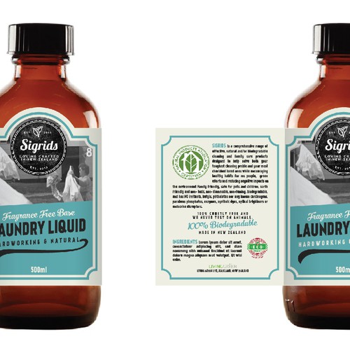 create a final label designs for sigrids Cleaning and baby ranges. A natural eco range with vintage, honest feel packs