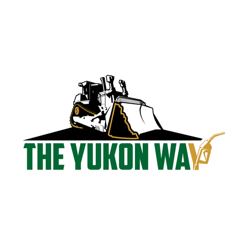 A dozer facing side ways (silhouette) with the dozer blade in the shape of the Yukon. Having "The" and "Way" on each sid