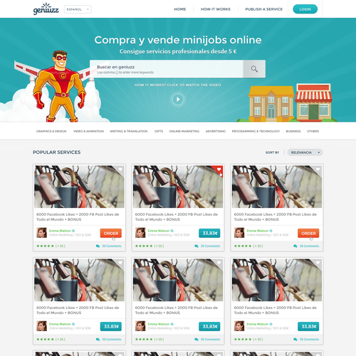 Marketplace offering small profesional services online. Prices start at 5€...