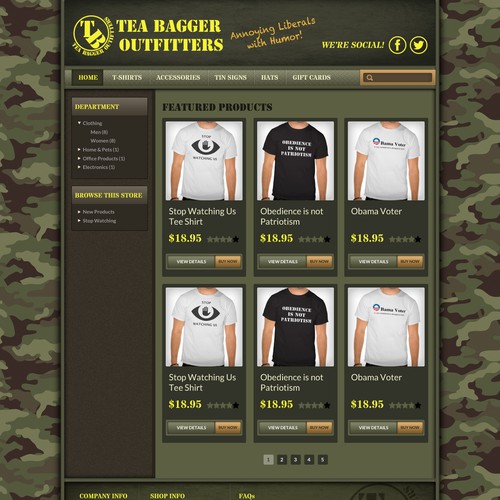 Sells political tee shirts and other novelties. Target audience is US based, politically conservative or libertarian...